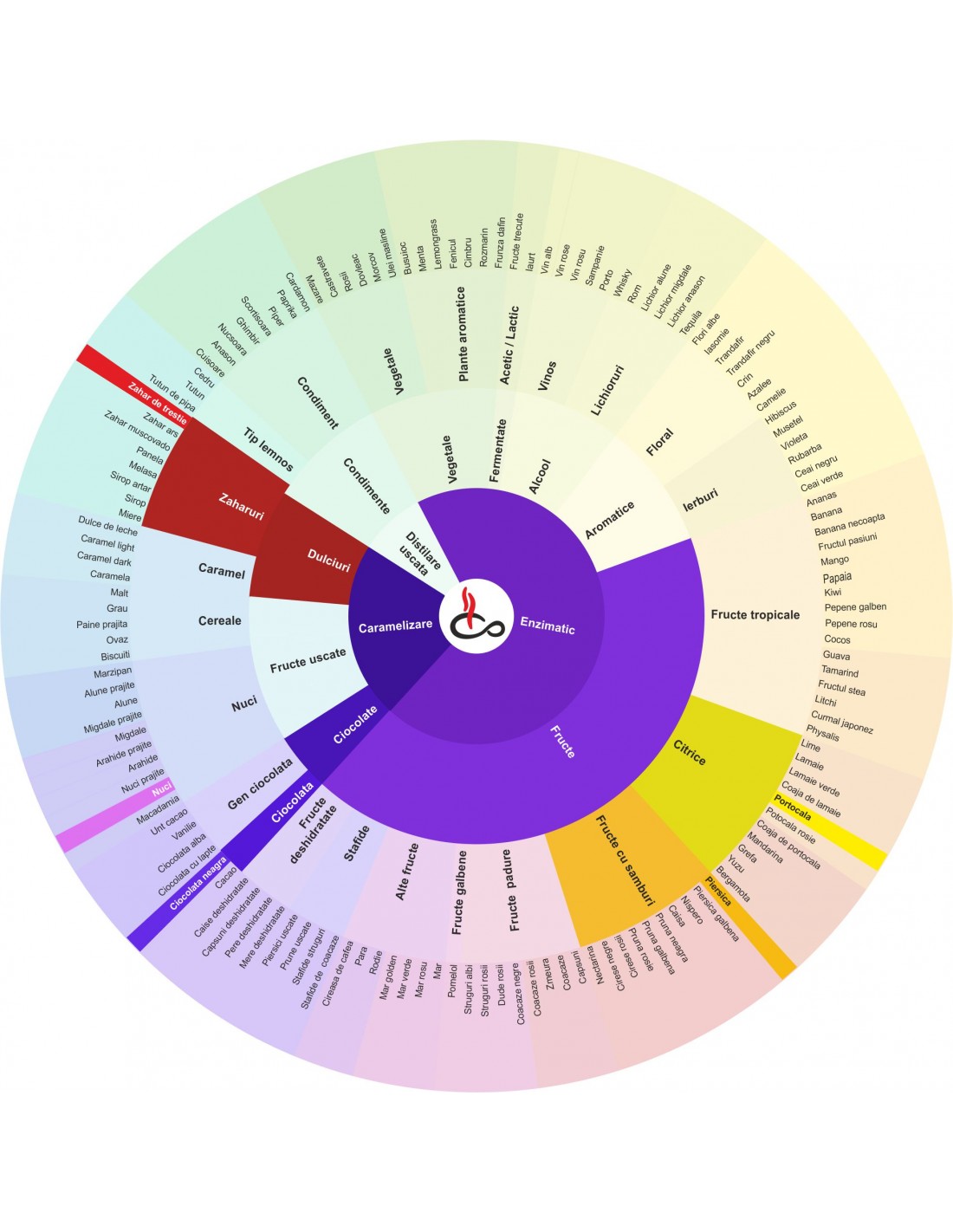 Cupping notes: Aciditate fructata de portocale. Note: gem de piersici, ciocolata, portocale. Gust cremos si dulceata de ciocolata, retrogust de piersici.
